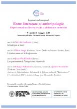 In occasione dell'uscita del numero 77 di Littératures curato da Alessandra Ferraro e consacrato alle rappresentazioni letterarie della differenza culturale sia in ambito francese che nelle letterature postcoloniali, l'antropologo Marc Augé (EHESS) e i critici letterari Jean-Paul Dufiet (Trento), Filippo Salvatore (Concordia, Montréal) e Julien Roumette (Toulouse "Jean Jaurès") -  introdotti da Nicola Gasbarro - presenteranno le loro riflessioni sulle intersezioni tra letteratura e antropologia. Il numero della rivista raccoglie gli atti del seminario internazionale interdisciplinare «Brasile Québec. Comprendere le diversità ai tempi dei conflitti» (Udine, dicembre 2015). L'evento è  organizzato dal Centro di Cultura Canadese (Alessandra Ferraro e Nicola Gasbarro). Università di Udine, Palazzo Caiselli, Salone del Tiepolo