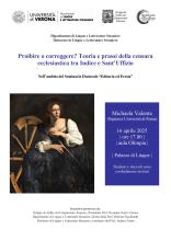 Nell'ambito del seminario "Editoria ed Eresia", diretto da Rosanna Gorris Camos e Daniele Speziari, il 16 aprile la Prof.ssa Michaela Valente (Sapienza Università di Roma) terrà una conferenza dal titolo "Proibire o correggere? Teoria e prassi della censura ecclesiastica tra Indice e Sant'Uffizio".
